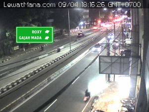 Kamera berada di Jalan Hasyim Ashari, Jakarta Pusat Arah ke kanan (menjauhi kamera) menuju Roxi, Arah ke kiri menuju Jl. Gajahmada